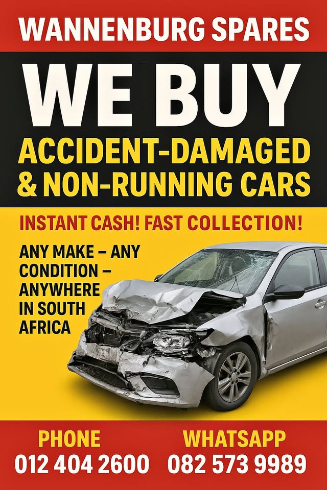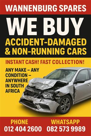 WE BUY ACCIDENT DAMAGE AND NON-RUNNING CARS AND BAKKIES 012 404 2600view more 0825739988view more