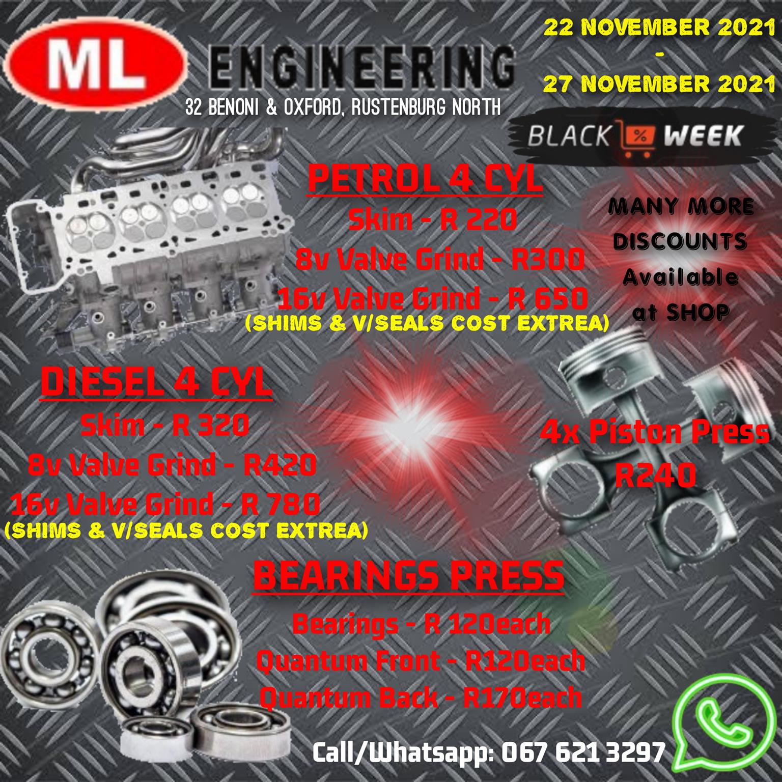 ML MOTORS - SPARES/ENGINEERING.The ENGINEERING DEPARTMENT is having a Black November week!!!!22 NOVEMBER 2021 - 27 NOVEMBER 2021