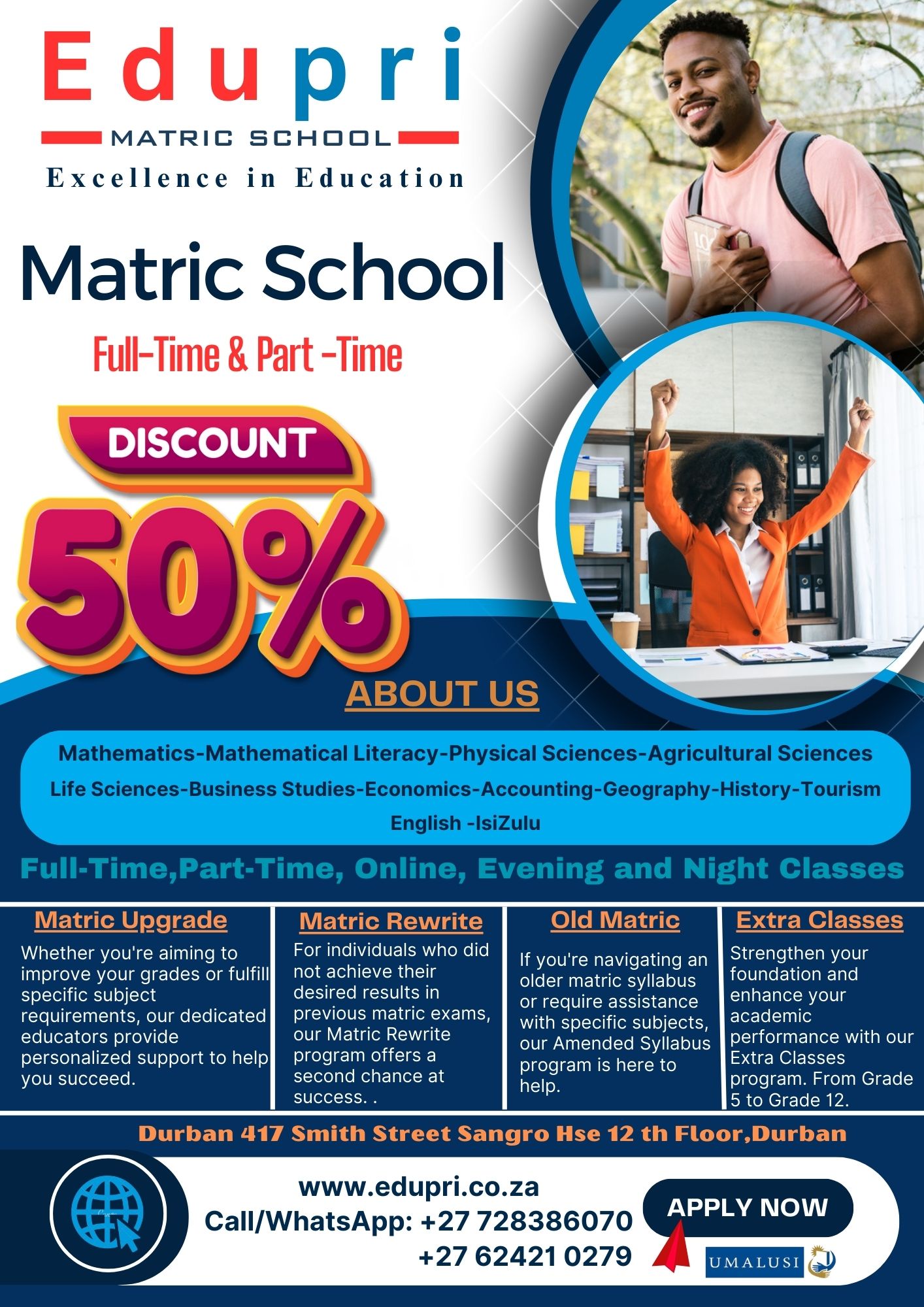 Are you ready to upgrade your Matric results, rewrite your exams, or complete your Old Matric (Amended Syllabus)? Or maybe you're looking for extra classes to boost your grades from Grade 5 to 12?