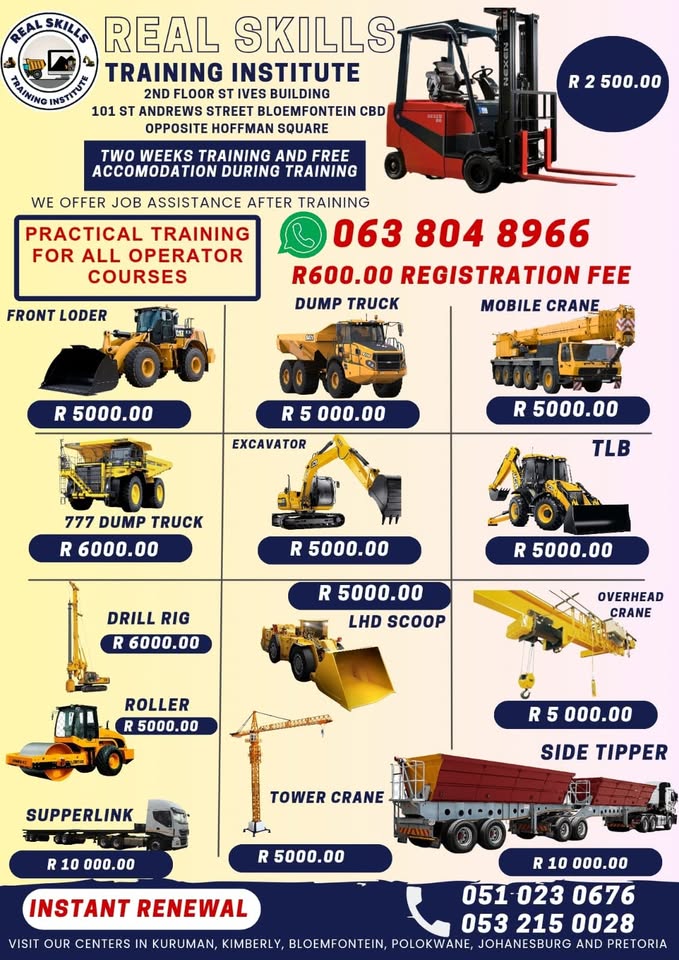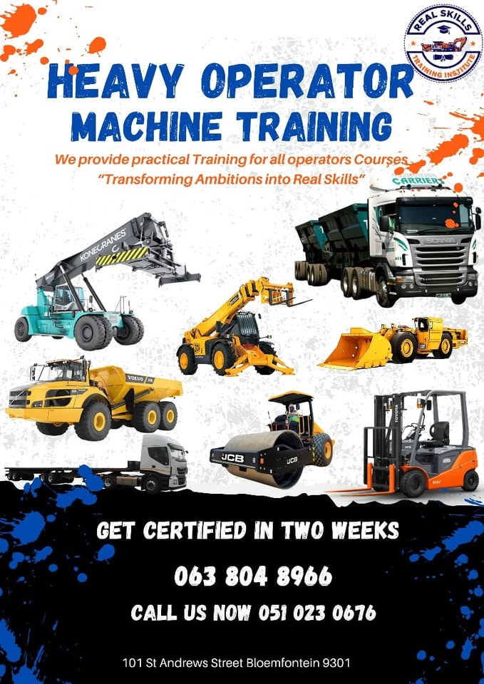 WE OFFER CONTRUCTION MACHINE TRAINING FOR TWO WEEKS, FREE ACCOMODATION DURING TRAINING. AFTER TRAINING YOU GET CERTIFICATE, OPERATORS LICENCE.