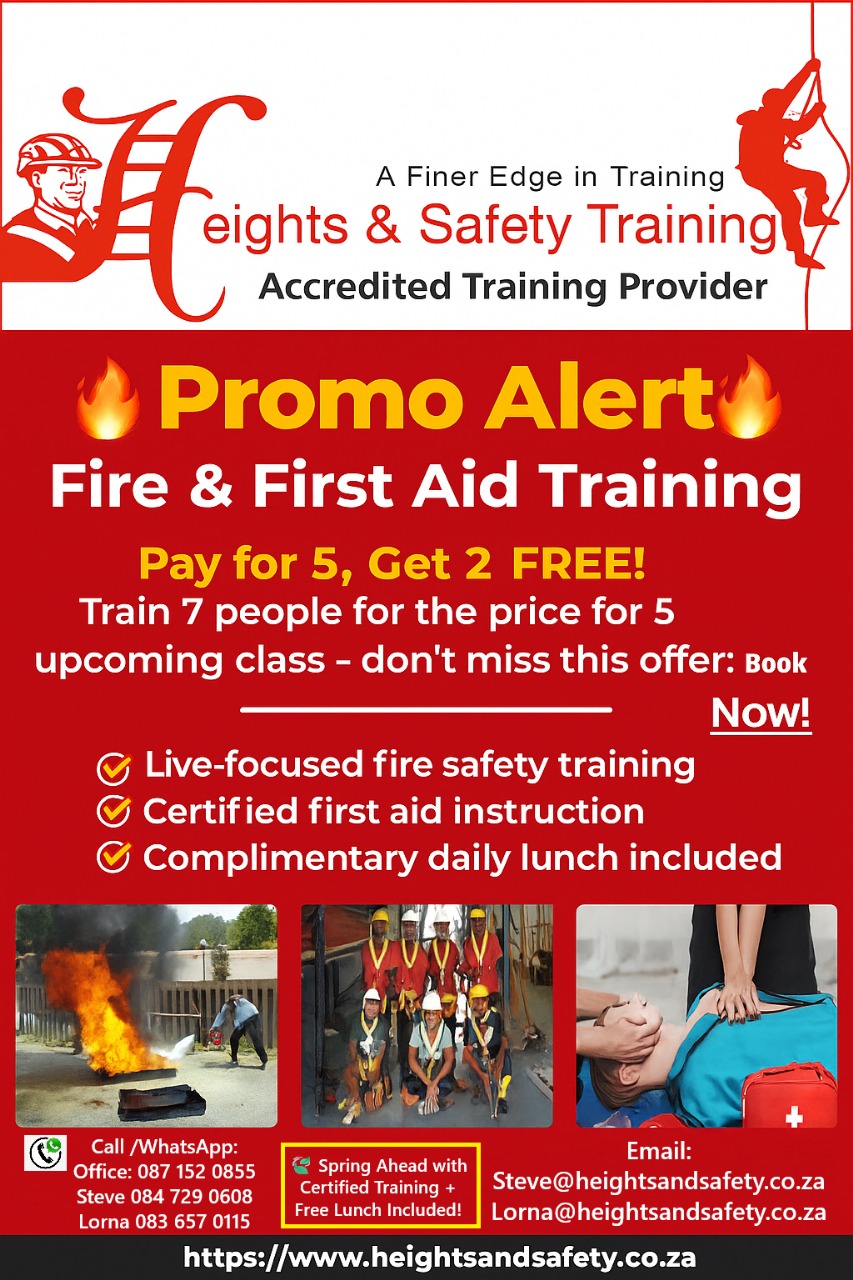 Onsite or offsite Safety courses. 087 152 0955view more. www.HeightsAndSafety.co.za.