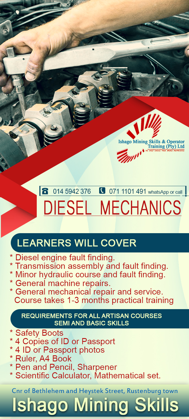 DIESEL MECHANIC MINING TRAINING SKILLS AT MADIKWE, RUSTENBURG