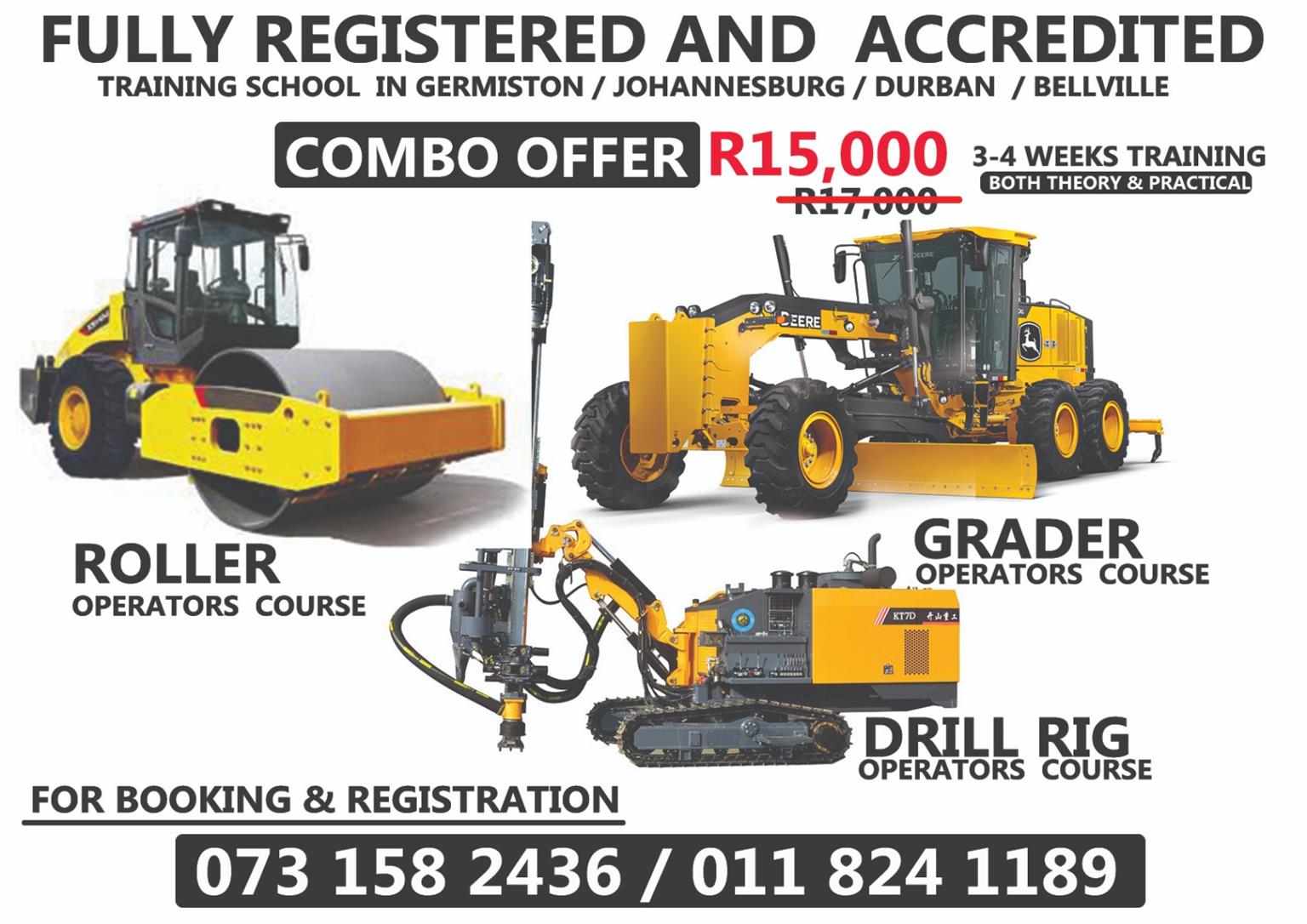 We do train Excavator, TLB, Grader, Dump truck, Front End Loader, superlink, Bulldozer, Roller Truck, Mobile Crane Welding courses including boiler making, Ar welding, plumbing and electrical , we based in Germiston, durban, and bellville , school gives accommodation to students from far
