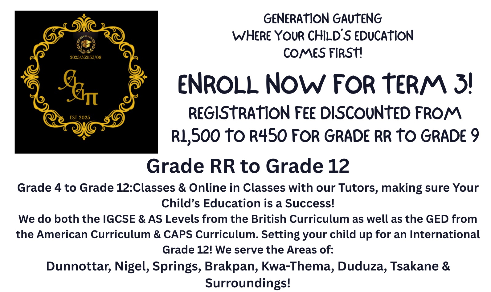 Enroll your child for the 3rd Term at @Generation Gauteng