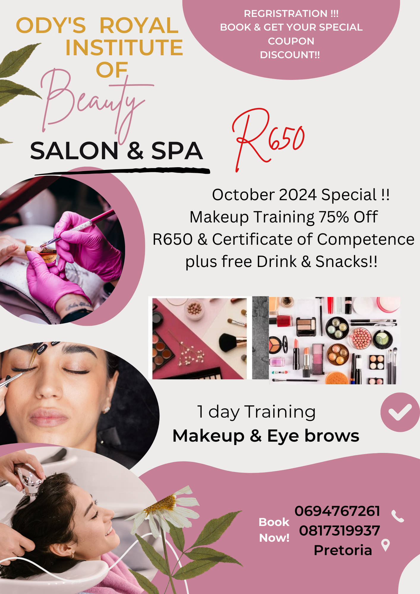 Make up class R650 on special full Beauty Therapy course R2000