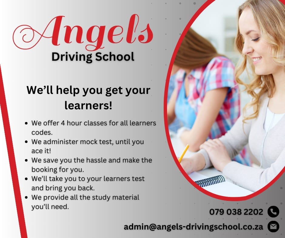 Angels Driving School Qualified Instructors Easy to use carsLearners code A, B and EBDrivers license code A, B and EB