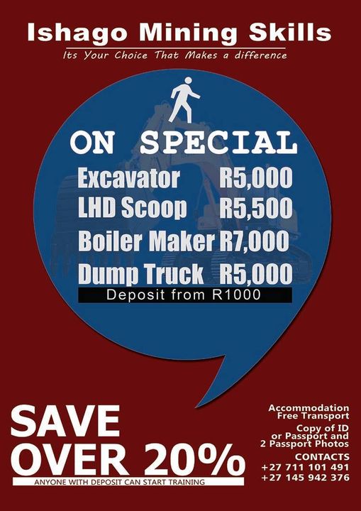 first aid level 1, 2 & 3 R3500, On-setter R12500, diesel mechanic R9000,