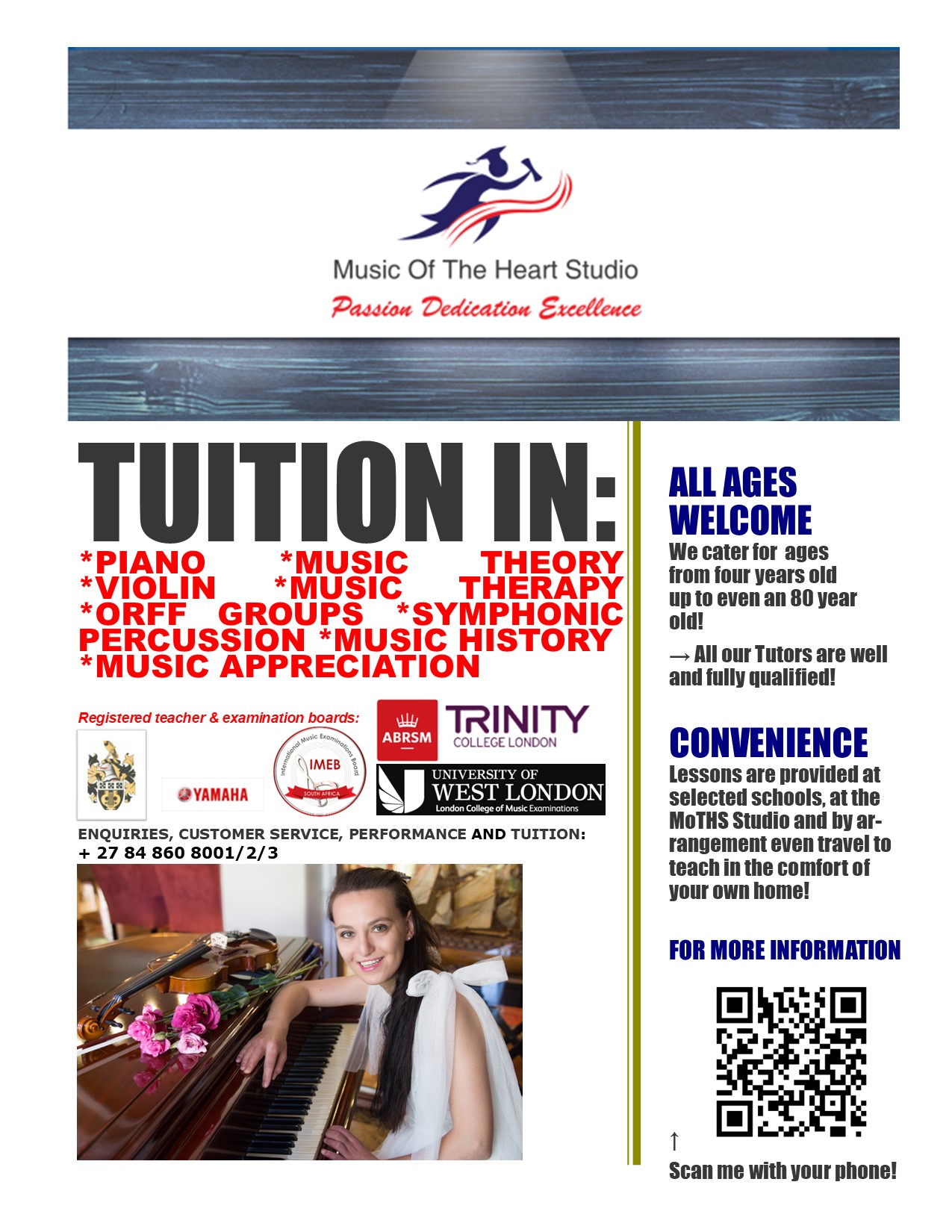 Music Education. Piano, violin, Symphonic Percussion, Theory, History, Orff