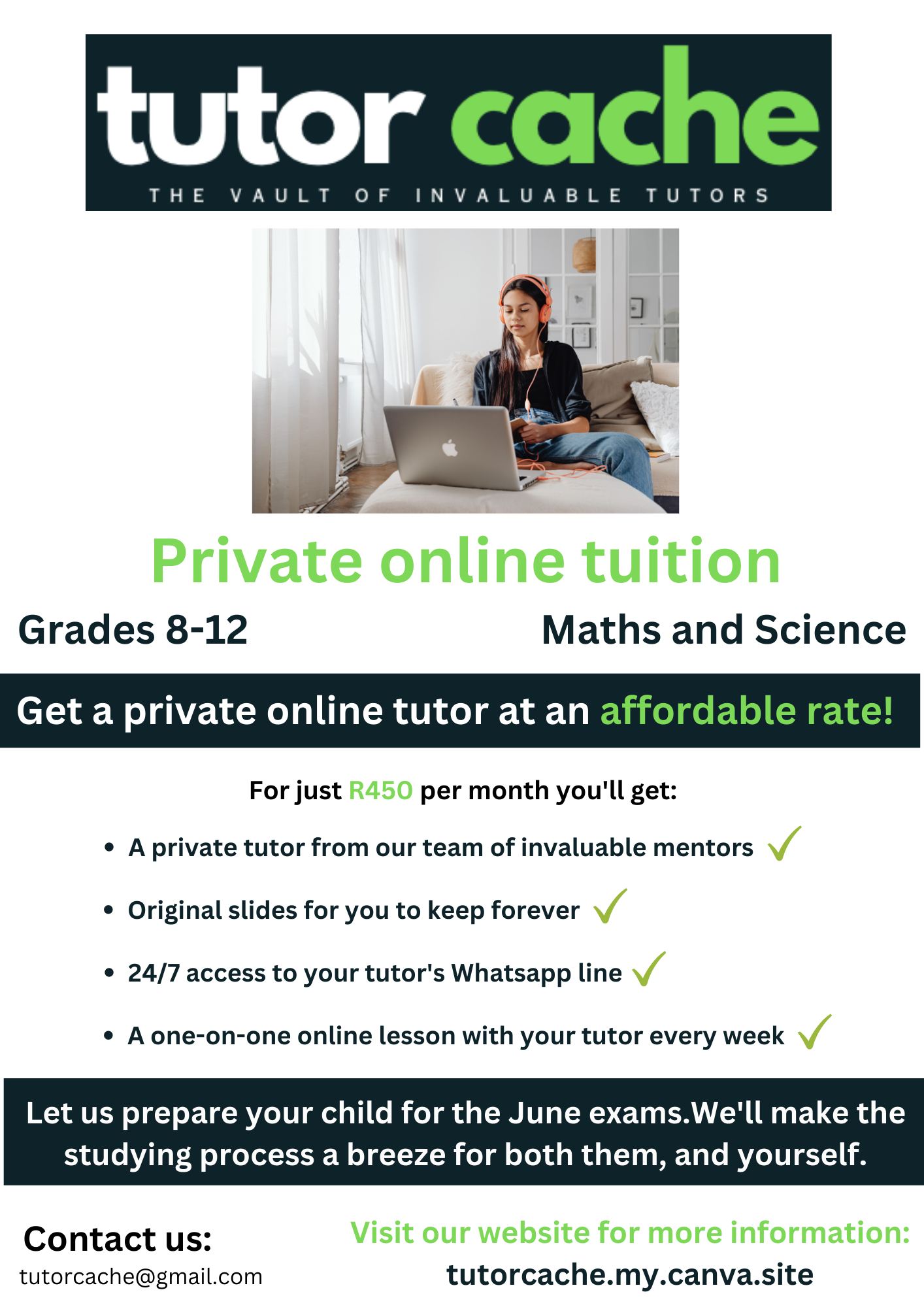 Visit our website: tutorcache.my.canva.site for more info on plans and promotions. You can also contact us at tutorcache@gmail.comview email... for further enquiries.