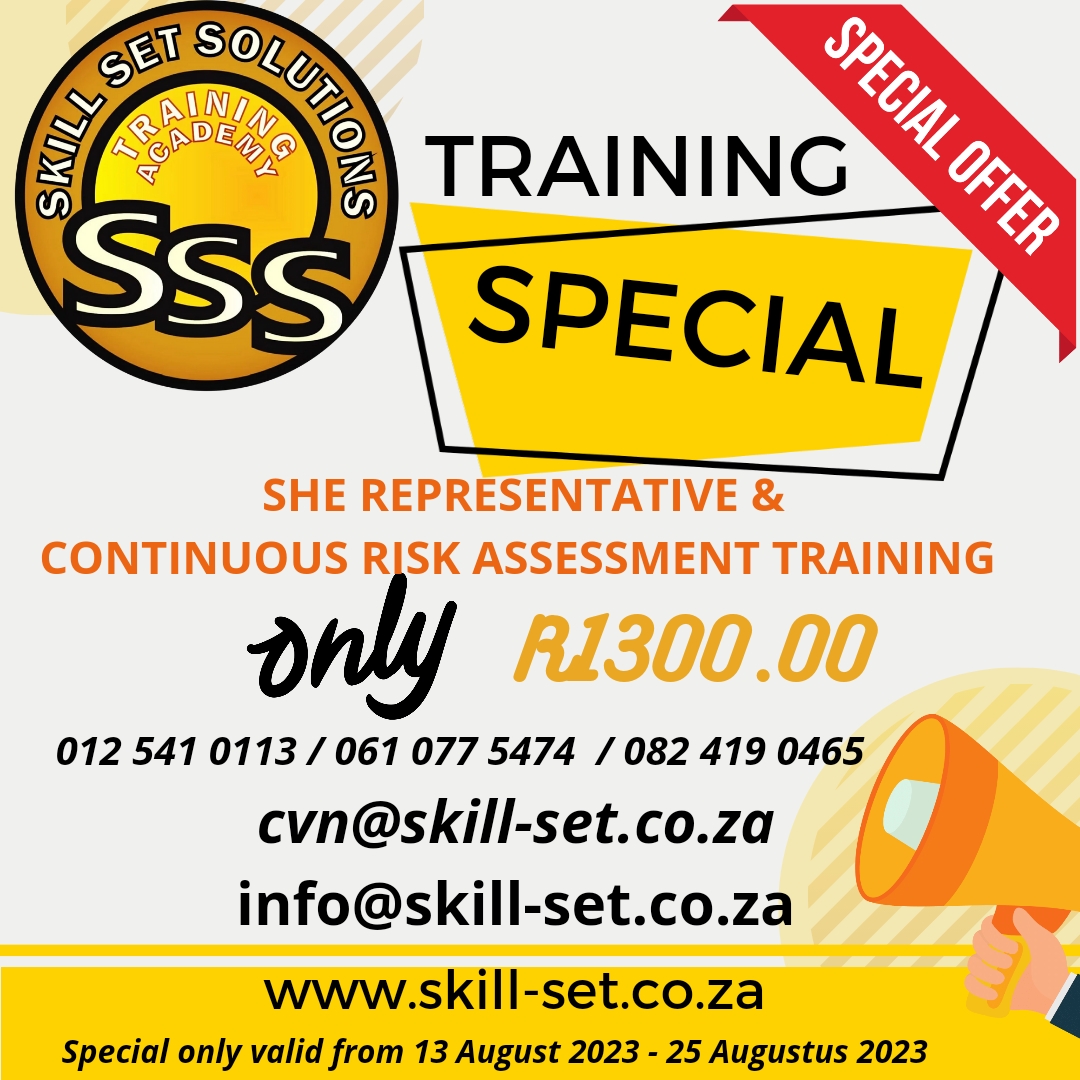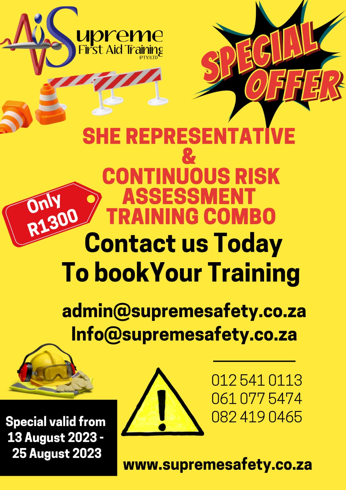 SHE REPRESENTIAVE AND CONTINOUS RISK ASSESSMENT AT A BARGIN PRICE FOR R1300.00 only...What a catch