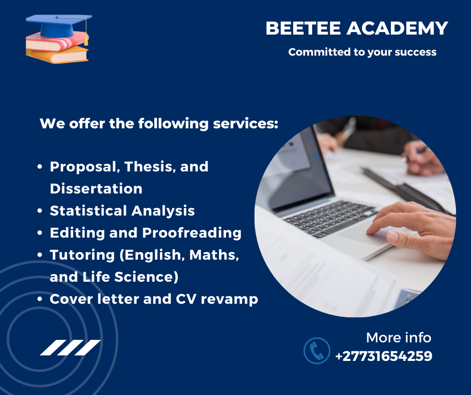 Our services are designed to meet your specific requirements, whether you require support in academic writing, statistical analysis, tutoring, or professional document preparation. We are committed to assisting you in achieving your goals and succeeding in your endevours.