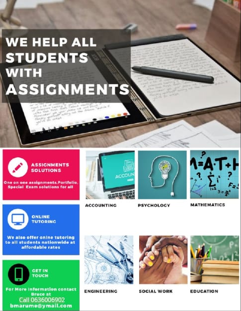 We do assignment and online exams for all undergraduate and postgraduate degree programs. Call or WhatsApp 0628760063view more. Pass guaranteed