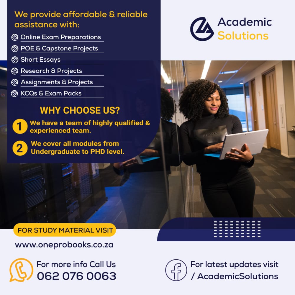 Assignment and online exam assistance for UNISA, MANCOSA, REGENT, STADIO ETC. More details: