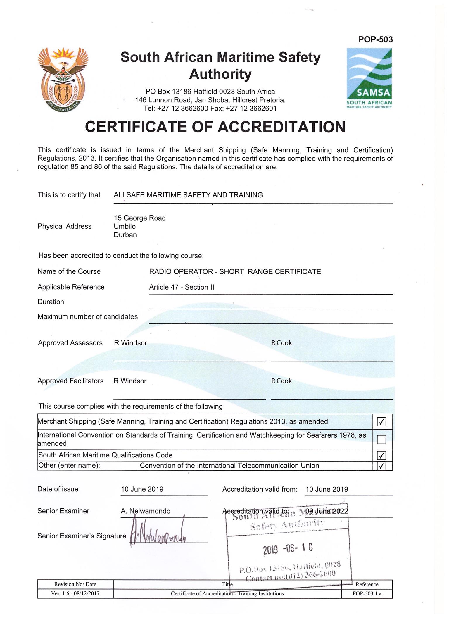 Training and Examination are done by an approved SAMSA and Registered Lecturer and Examiner.