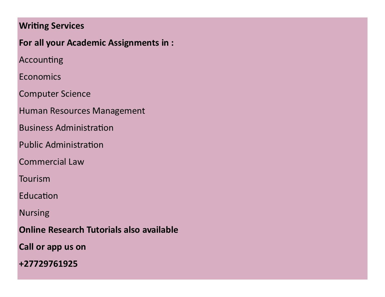 Call me. I offer 24hr assignment writing assistance, on demand research proposals and portifolio of evidence.