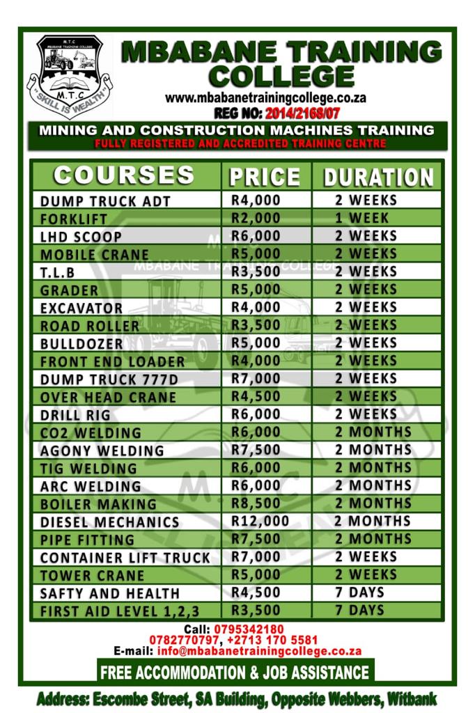 Mbabane Training College is a fully accredited school, just come and get the skills you need in the following courses +27795342180view more