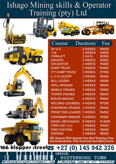 first aid level 1, 2 & 3 R3500, On-setter R12500, diesel mechanic R9000,
