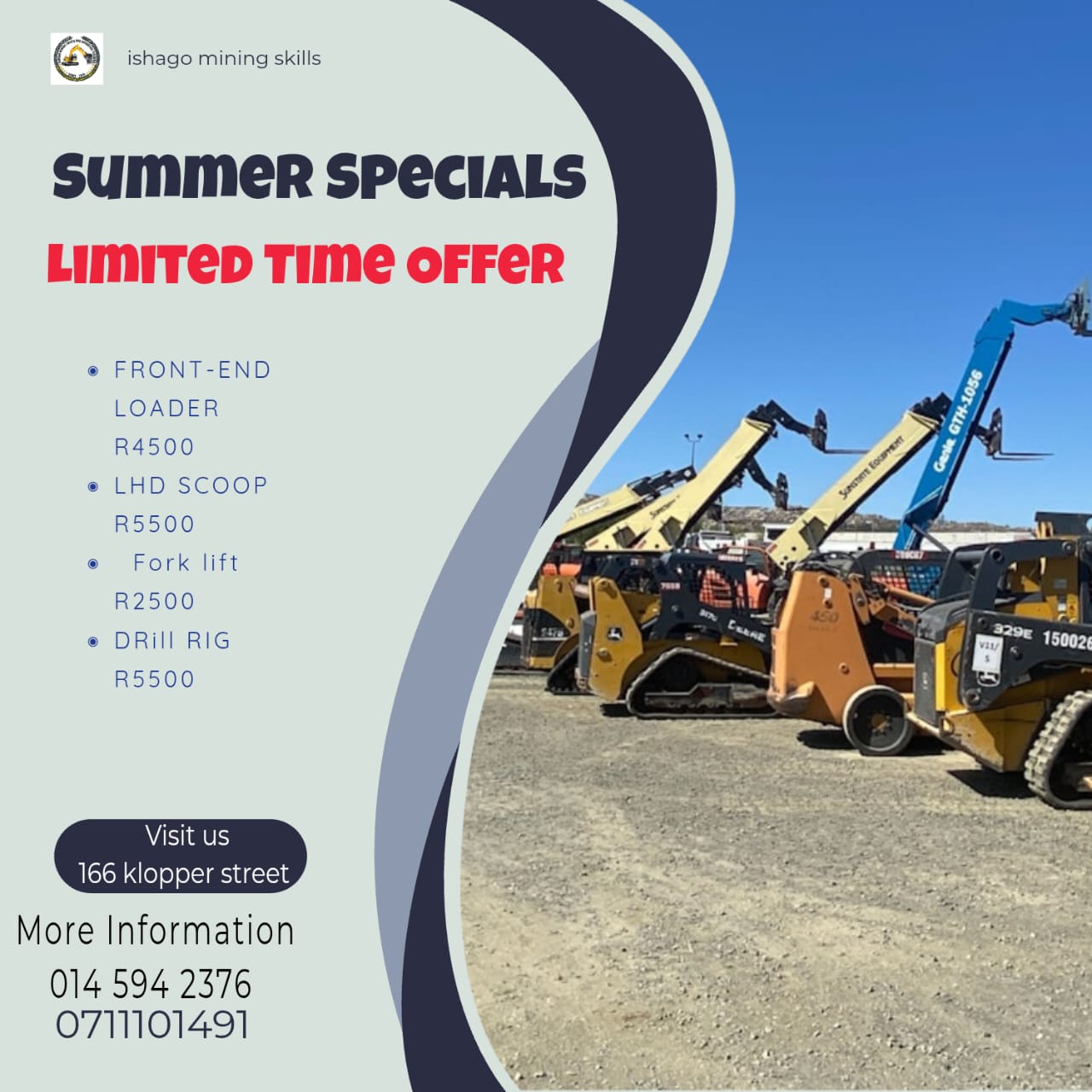 roller R4500, boiler maker R8000, bob cat R3500, forklift R2500,