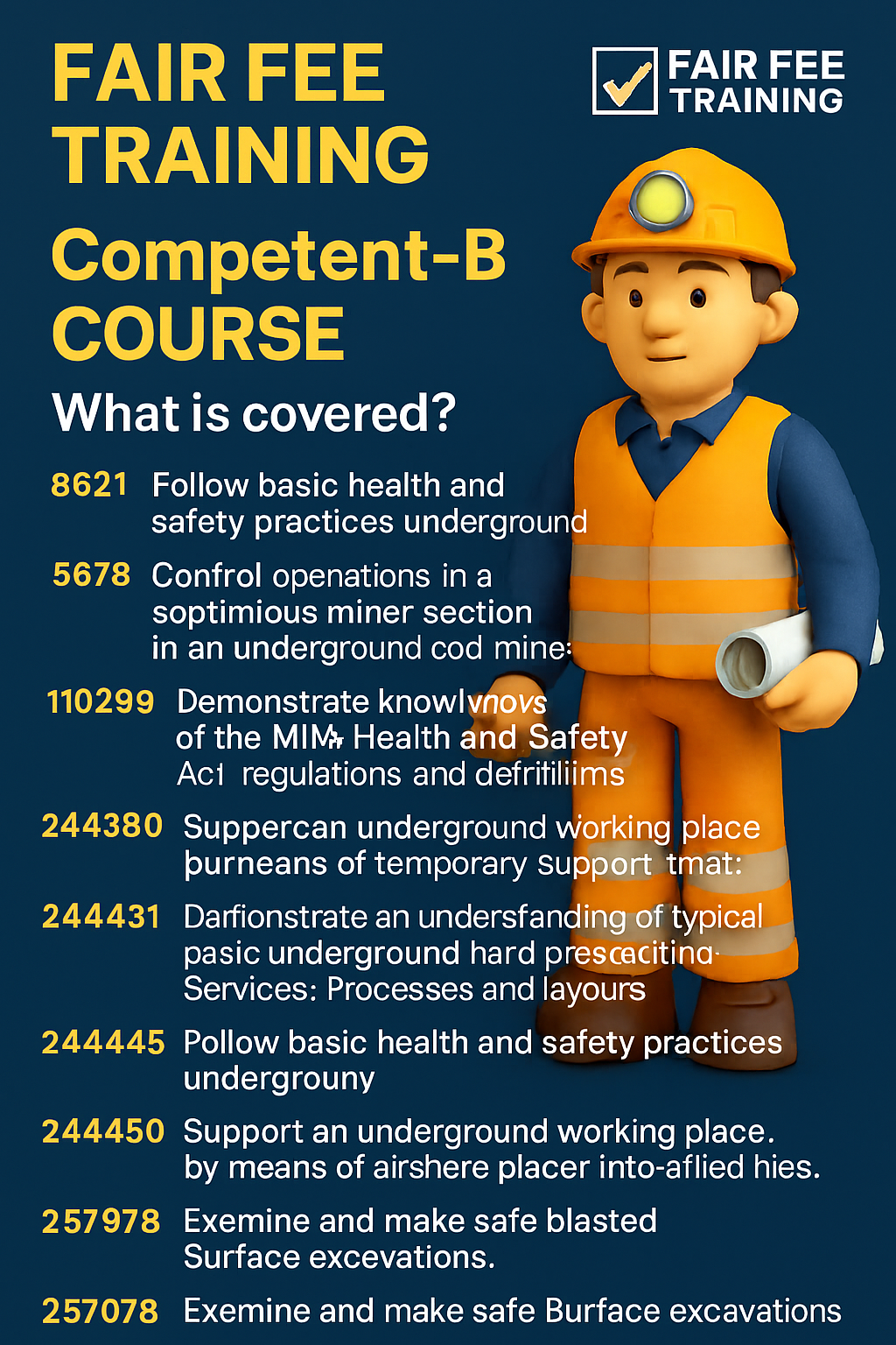 Competent B Person Training, Competent A Person Course, Mining Supervisor Training, Underground Mining Certification, Mine Operations Training, Safety Compliance, Mining Leadership, Competent Person Certification, Mining Skills, Career Advancement.