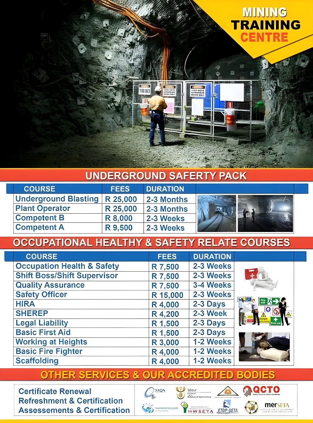 We also do Assessments & Certifications under CETA, TETA, MQA, HWSETA, QCTO etc like: