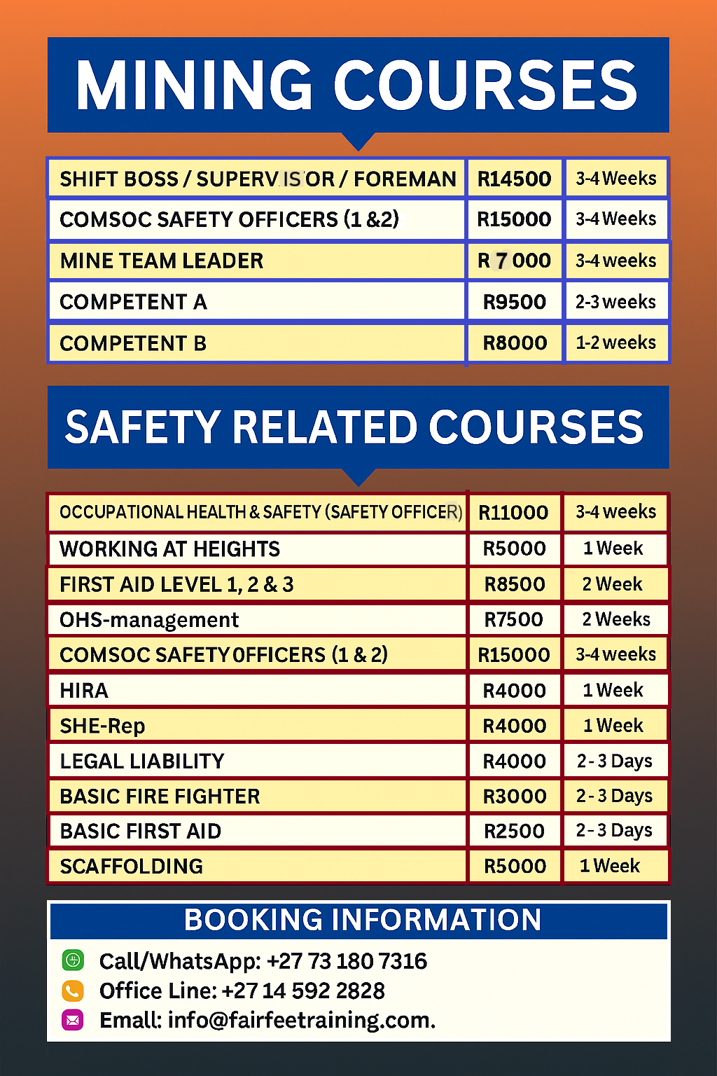 #MiningTraining #SafetyCourses #FairfeetTraining #RustenburgSkills #CareerBoost