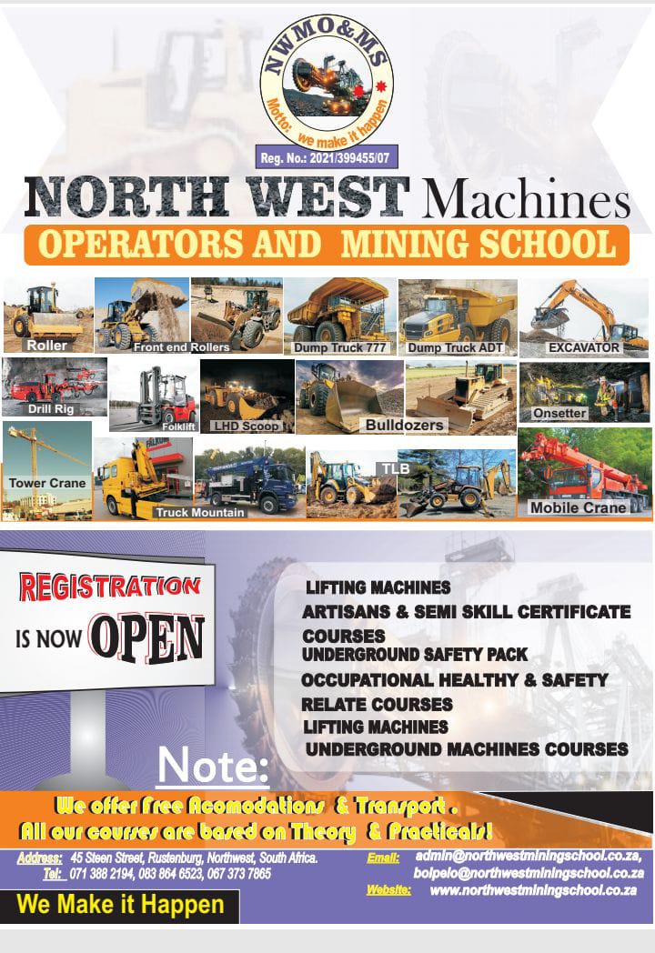 Undergrounds machines, lifting machines, semi skills courses, artisans, operators courses, occupational health and safety etc