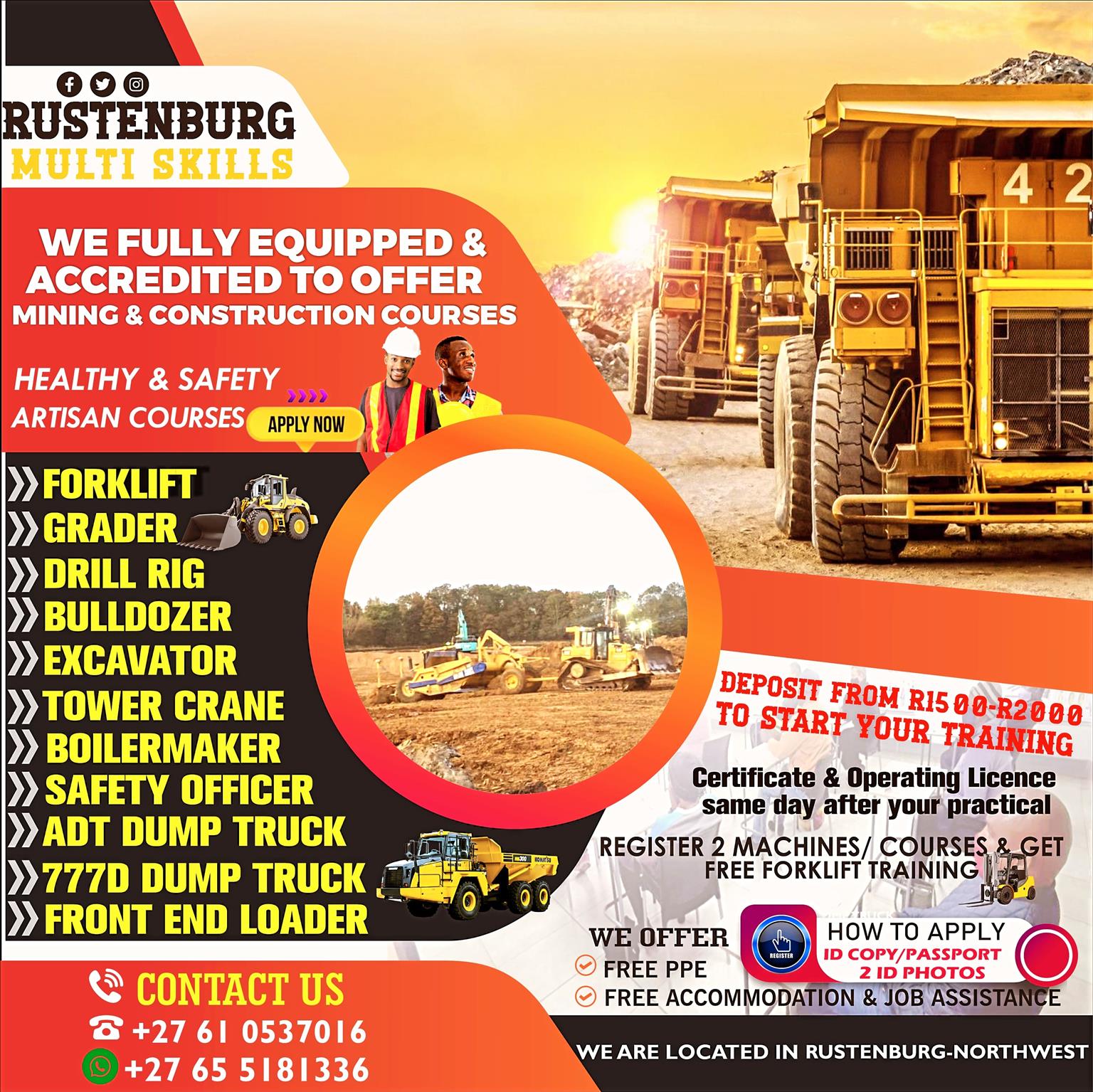 Call/WhatsApp: 061 053 7016view more /+27 781230335view more (South Africa) Accommodation free only & food is self-catering for those days you be training
