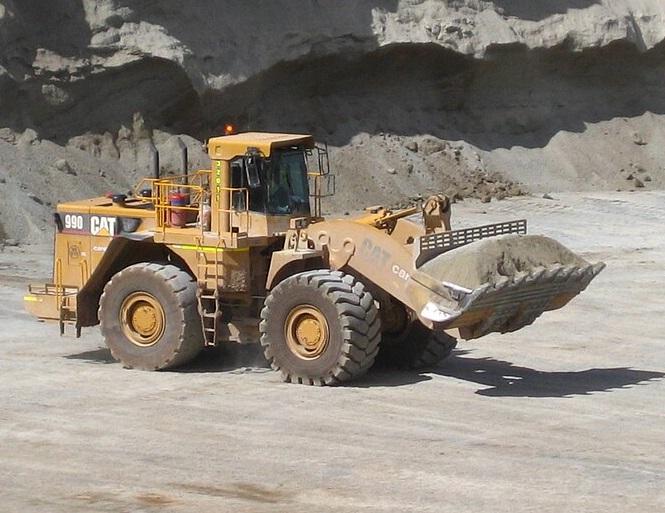 A loader is a type of tractor, usually wheeled, sometimes on tracks, that has a front-mounted wide bucket connected to the end of two booms (arms) to scoop up loose material from the ground, such as dirt, sand or gravel, and move it from one place to another without pushing the material across the ground. A loader is commonly used to move a stockpiled material from ground level and deposit it into an awaiting dump truck or into an open trench excavation.