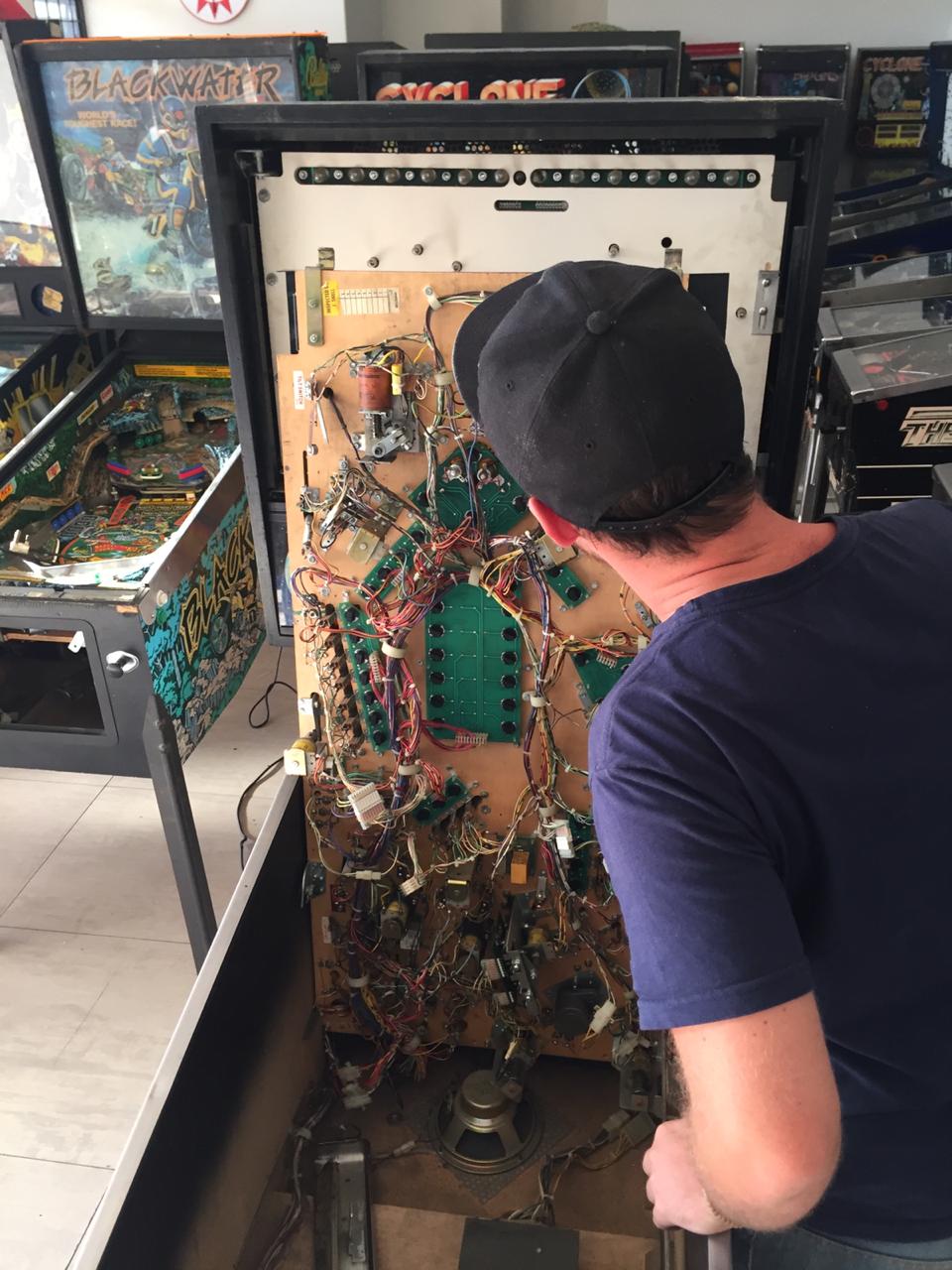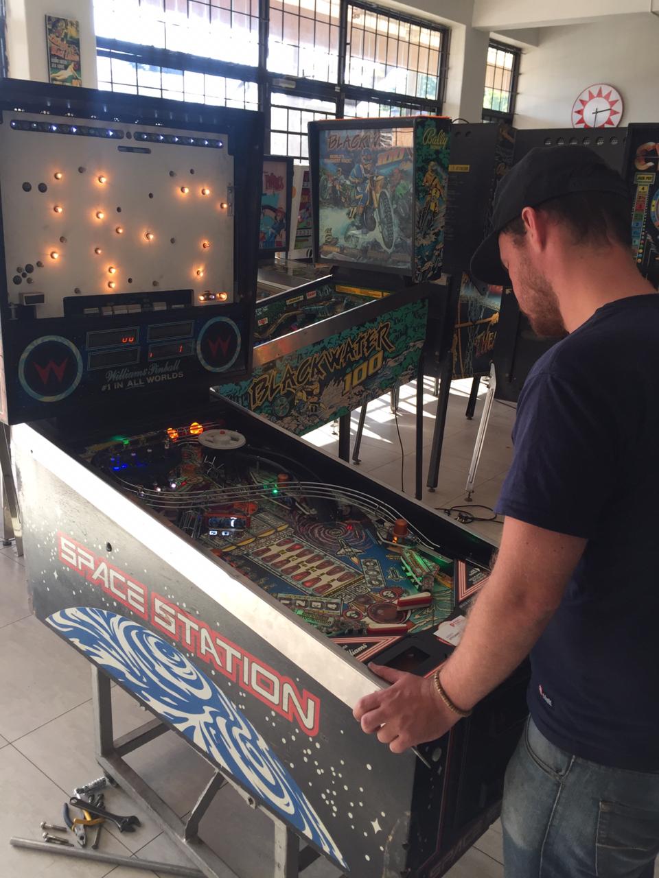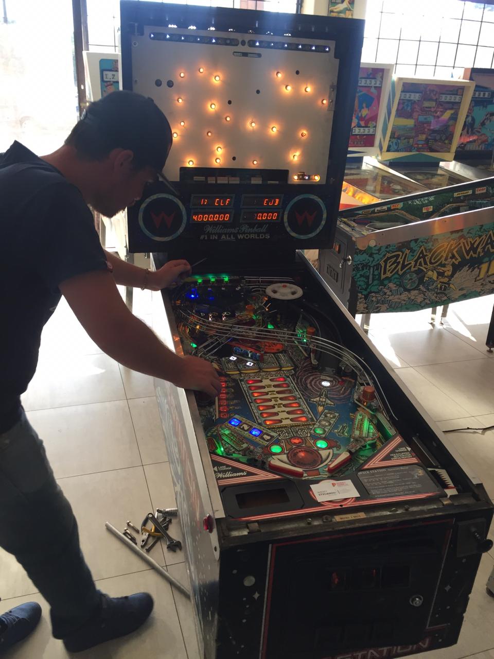 We do complete pinball machine restorations. Bring your pinball machine back to life by doing a com-plete service, refurbishing the cabinet and various other options. Call for more information.