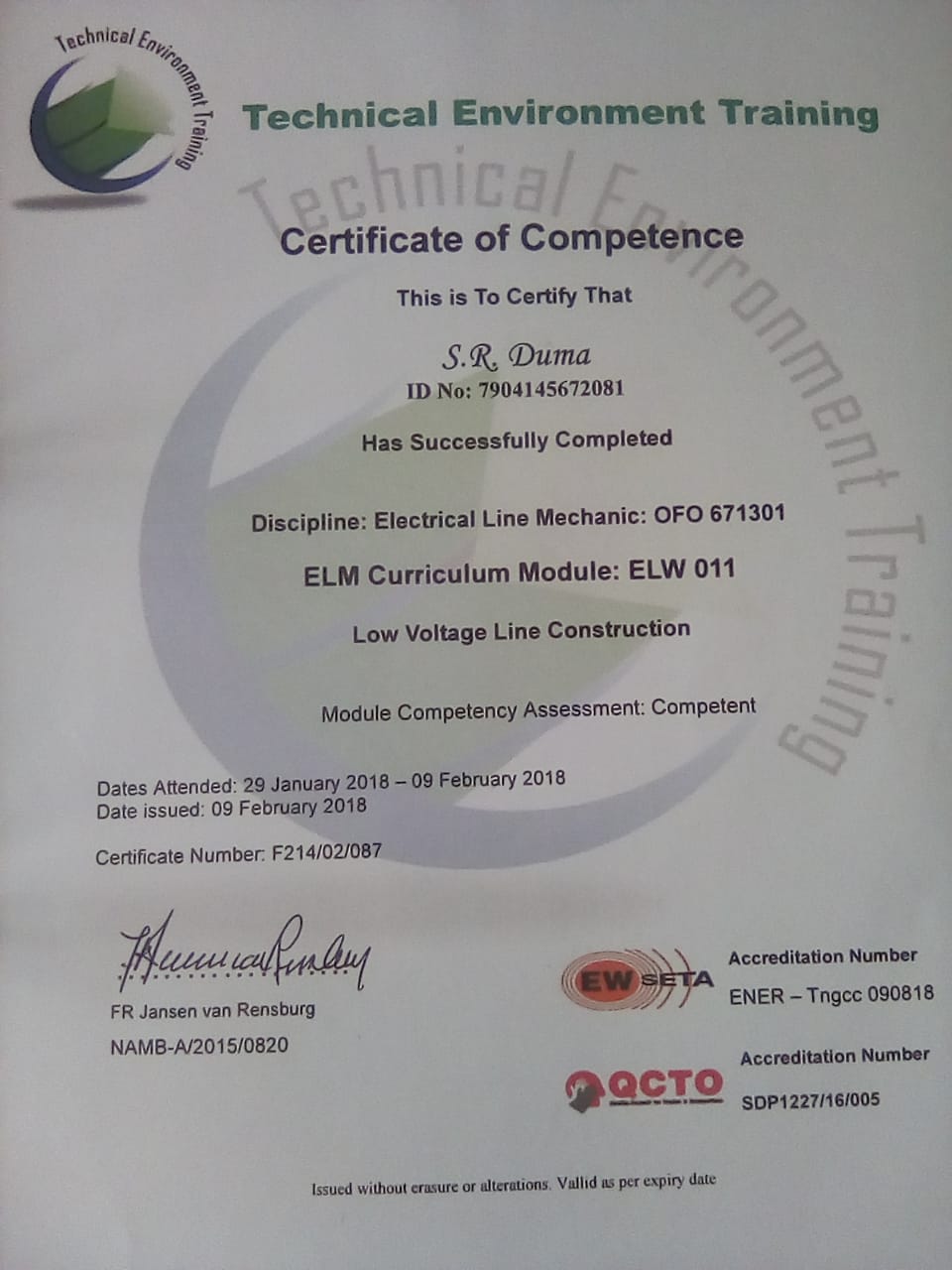 Install pole mounted Transformers,street lights,construction of Lv Line,