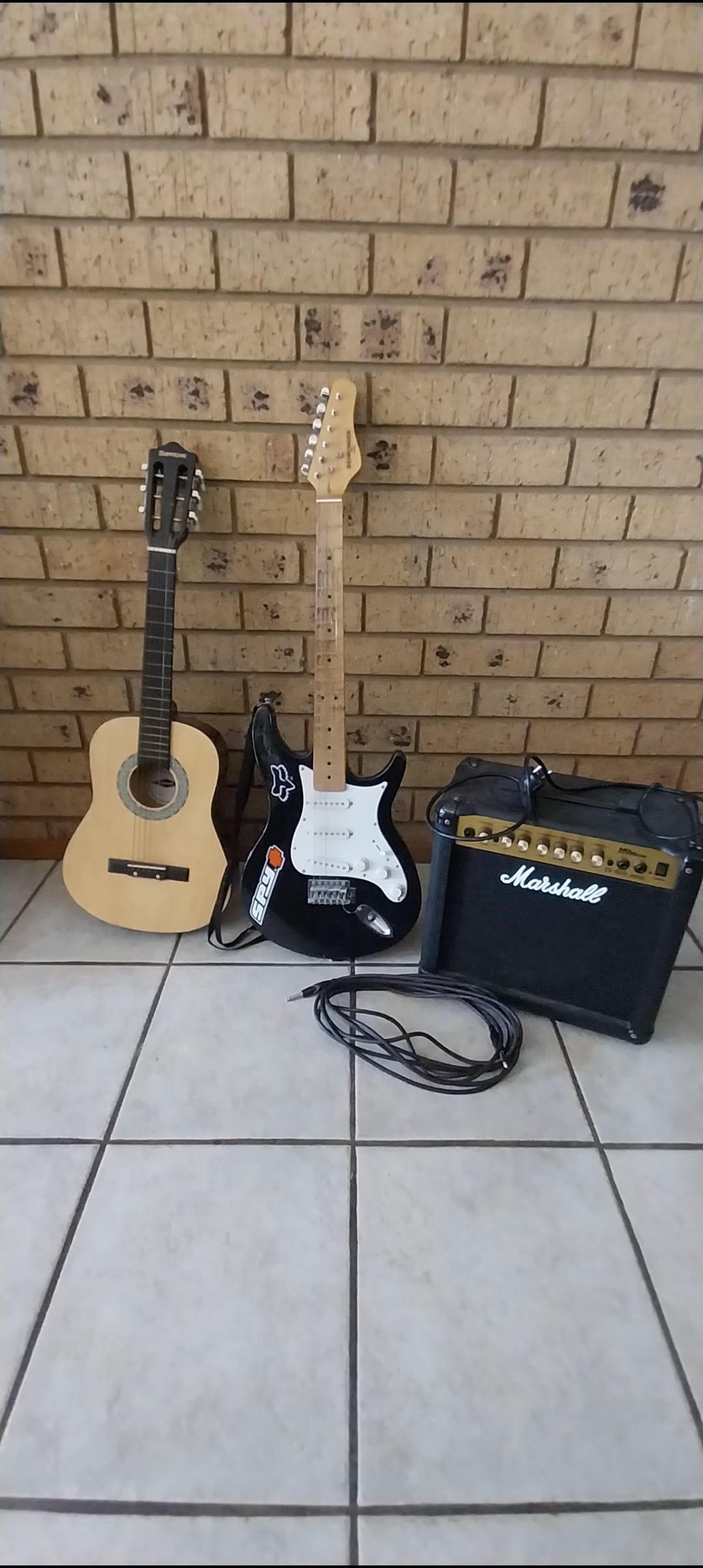 1 bokskitaar 1 elektriese kitaar met n speacker en kabel te koop