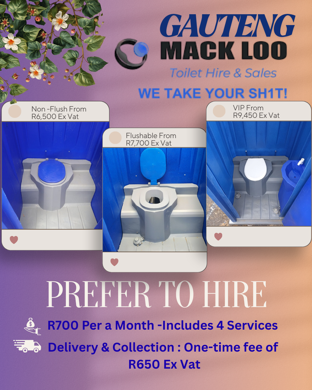 💼 RENT A TOILET FOR JUST R 700/MONTH!