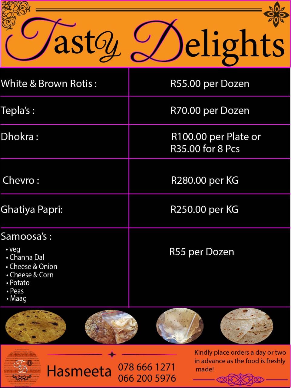 Based in Crosby Johannesburg. Tasty Delights Vegeterian food. Delivery can be arranged at a cost.