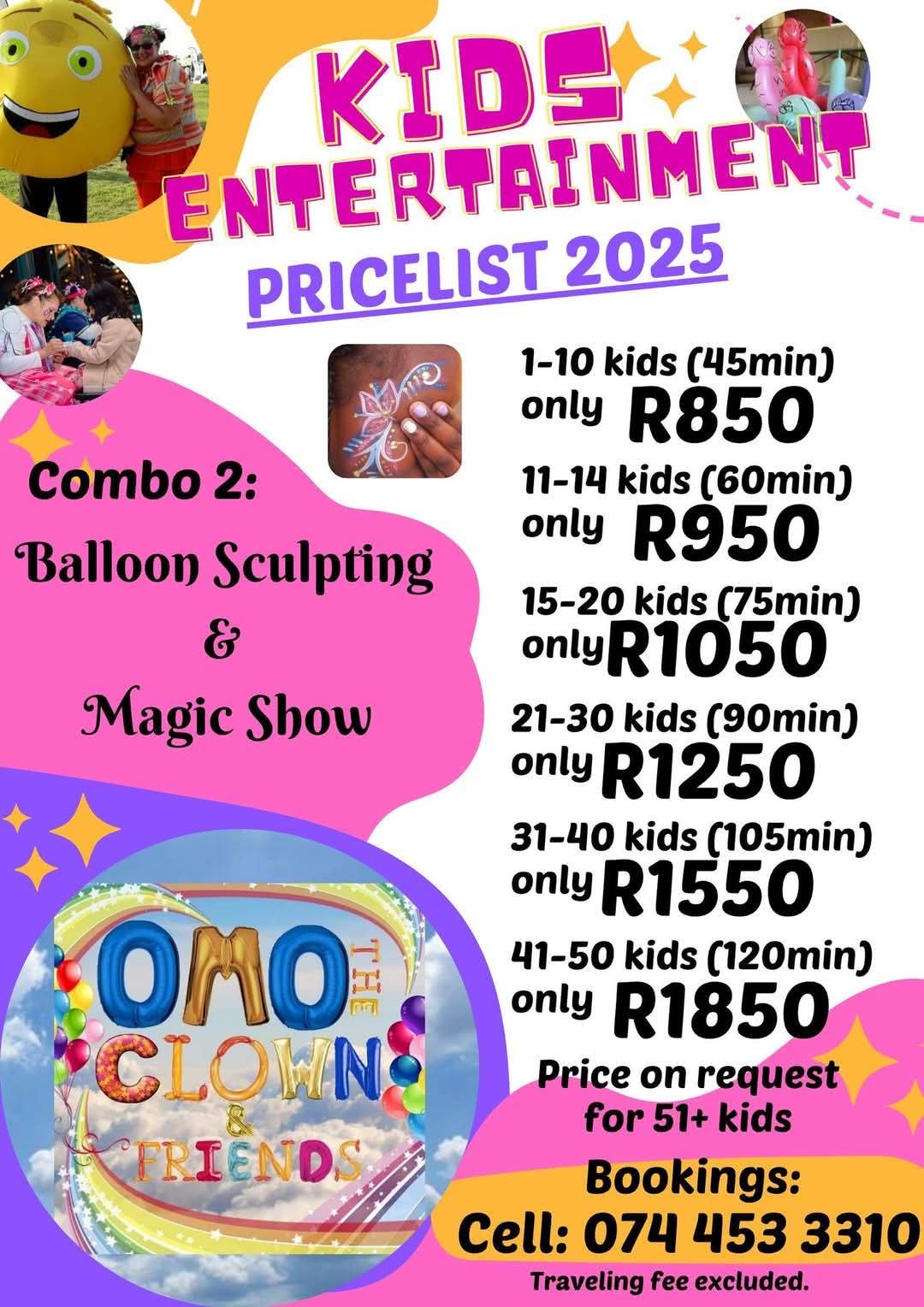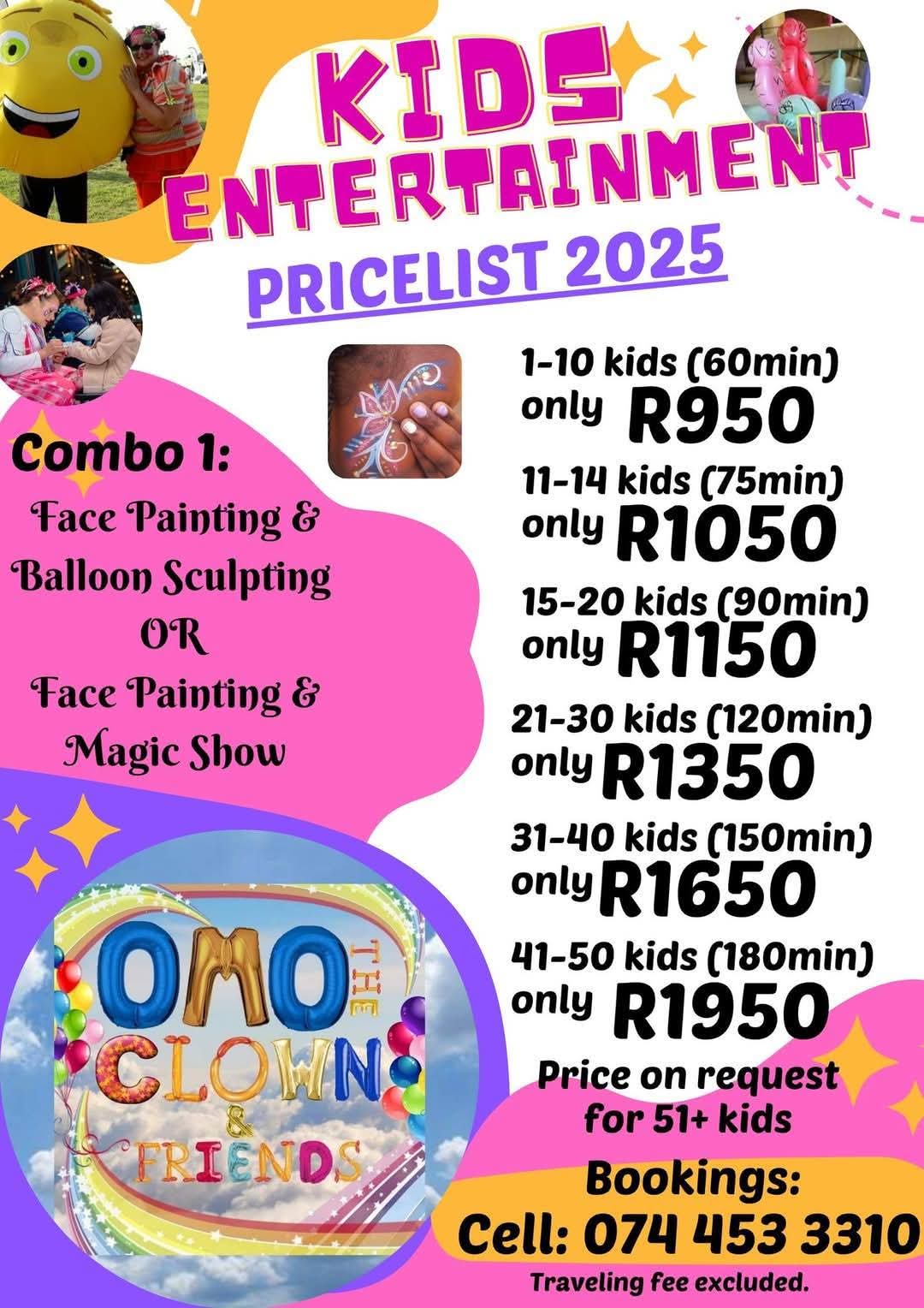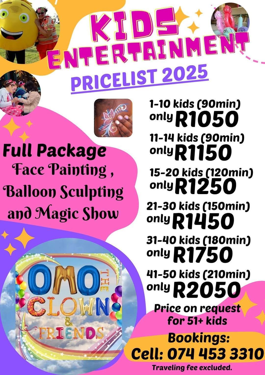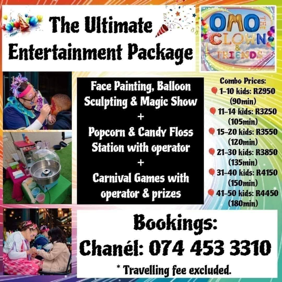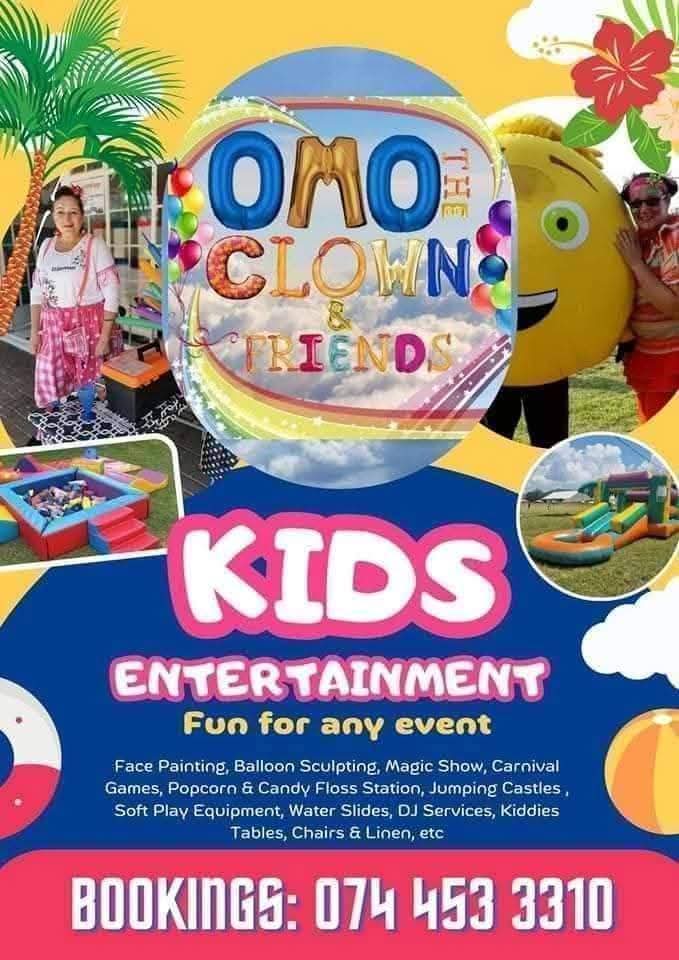 Invite Omo the Clown and Friends for fun filled activities for young and old!🎊