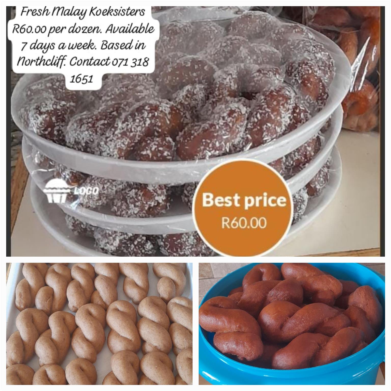 Freshly Malay Koeksisters R60.00 per dozen. Available 7 days a week. Based in Northcliff, just 1.6km's away from Northcliff corner. Contact Naomi on 071 318 1651view more via Whatsapp or direct Call ✨