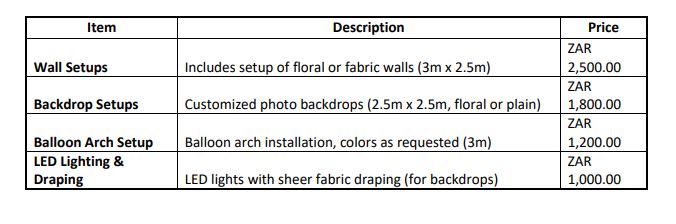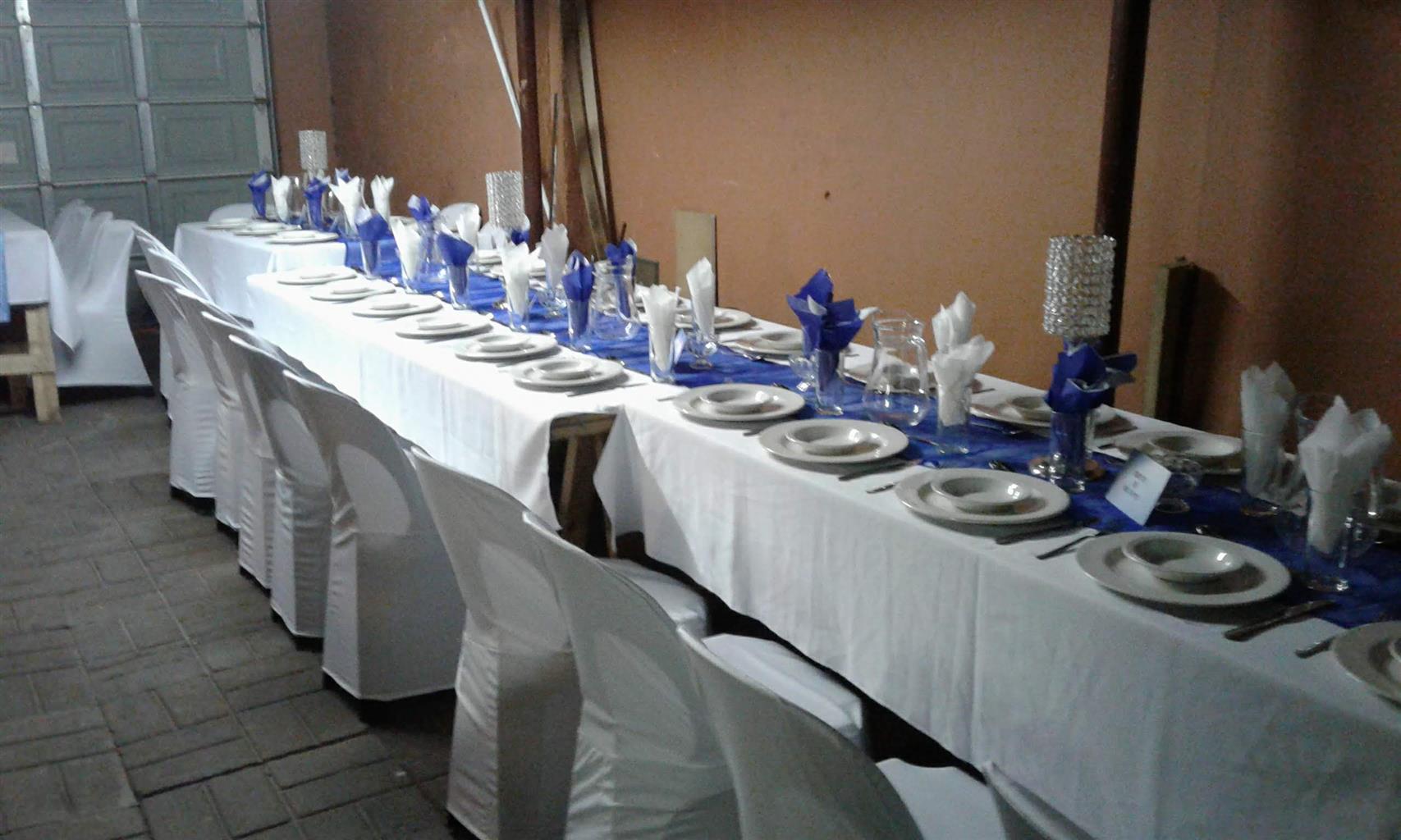 3. Table Linens & Decor: Enhance your tables with our stunning tablecloths, napkins, and centerpieces.