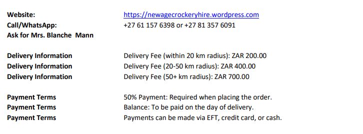 Visit our website at: https://newagecrockeryhire.wordpress.com/