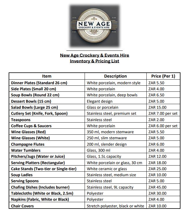 Are you planning a wedding, birthday party, corporate event, or any special occasion? Look no further! At New Age Crockery & Event Hire, we specialize in providing high-quality crockery, glassware, and event hire services to make your event unforgettable.