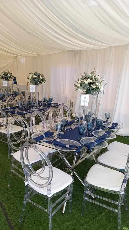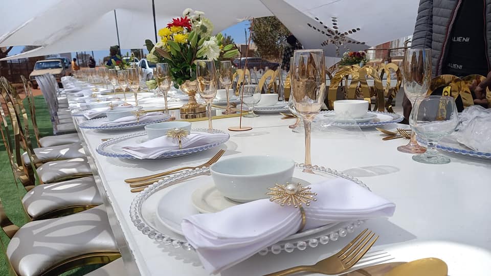Renting of chairs, tables, chair covers, under plates, glasses, tie backs and many more
