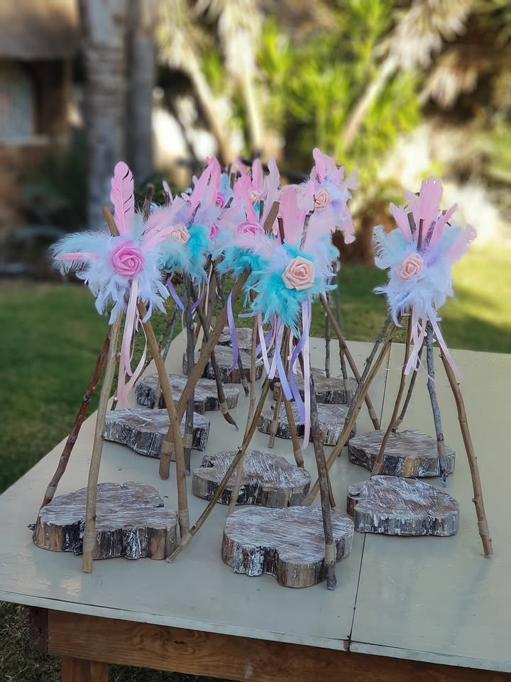 Pastel Teepee Centrepieces for hire. R60 each We are from Alberton