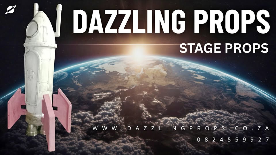 We are based in Brackenhurst Alberton Take your next school concert or production to new heights with this unique space rocket prop! Size: 2.42m high x 1.1m wide. Transport-friendly: The stands pull out easily for quick setup and moving. What makes this rocket extra special is its blend of old and new: the design combines a vintage, riveted “retro-futuristic” look with modern fibreglass finishing. The soft metallic tones and quirky details give it that classic 1950s sci-fi rocket feel, while still looking fresh and sturdy enough for any stage. Perfect as a show-stopper on stage, a backdrop for photos, or the centerpiece of your space-themed event. #SchoolConcerts #stageprops