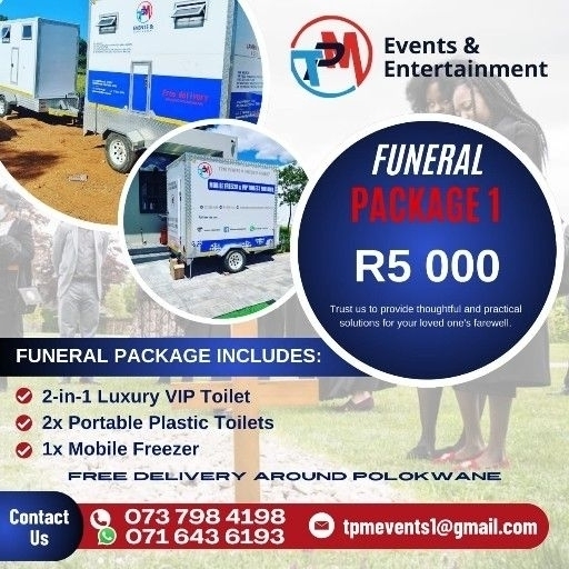 Funeral Packages 1x 2in1 Mobile VIP toilet, 2x Portable Plastic toilets, 1x Mobile freezer/Coldroom