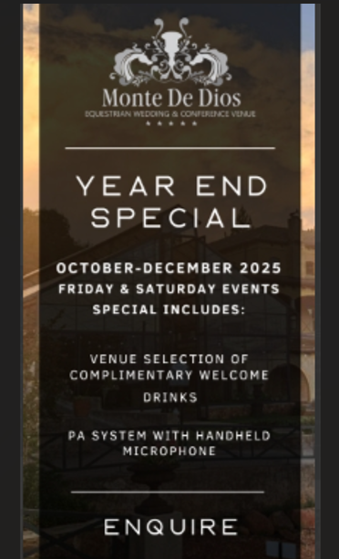 With the finest facilities, outstanding catering and professionally trained staff Monte De Dios has to be your first choice when deciding on a venue.