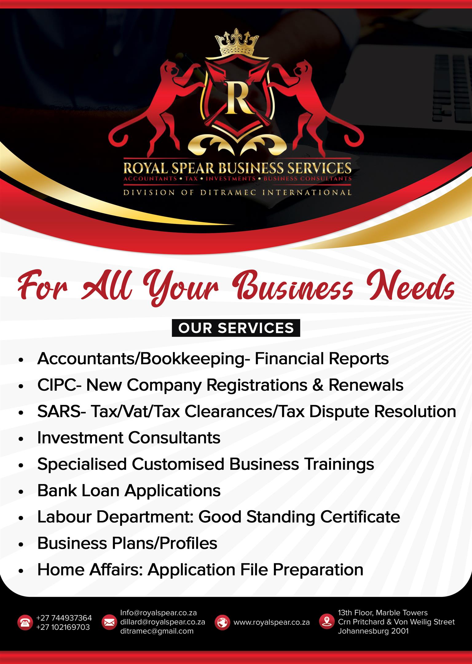 FINANCIAL REPORTS; SARS SERVICES; CIPC SERVICES; BANK LOANS & MORTGAGE APPLICATIONS