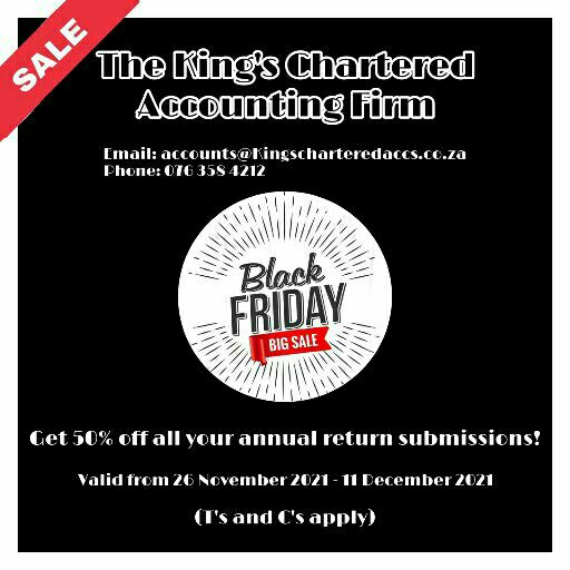 50% Discount on your annual return submission. Offer starts 26 November 2021 to 11 December 2021.