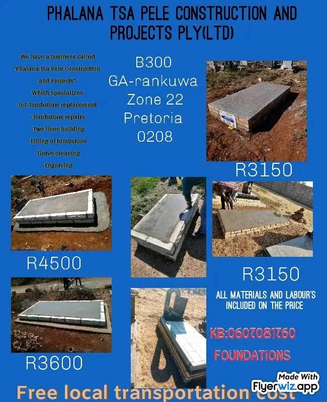 FoundationsFoundations at cemetery. More details:Intention - For SalePrice - 3150.0Region - GautengCity and Suburb - Pretoria