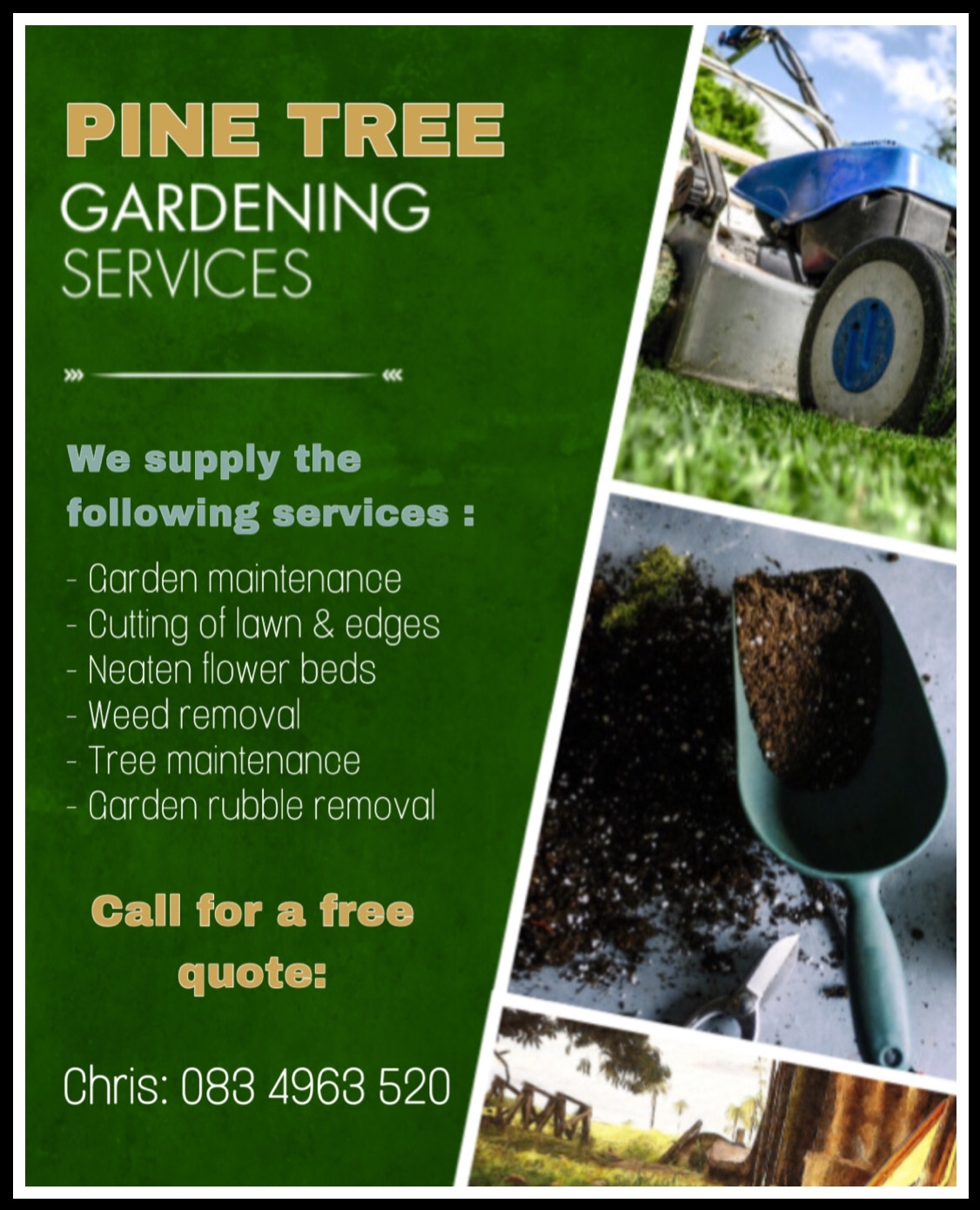 Mowing of lawns, weed removal, edge cutting, blowing of corradrives and remove the days garden refuse.Contact Chris +27 83 496 3520view more