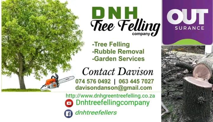 I do tree felling and fully insured with Outsurance, garden service and rubble removal. We very affordable and we do free quotation.