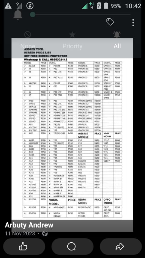 Phone screenCellphone screen and fix. More details:Intention - For SalePrice - 350.0Region - GautengCity and Suburb - Katlehong
