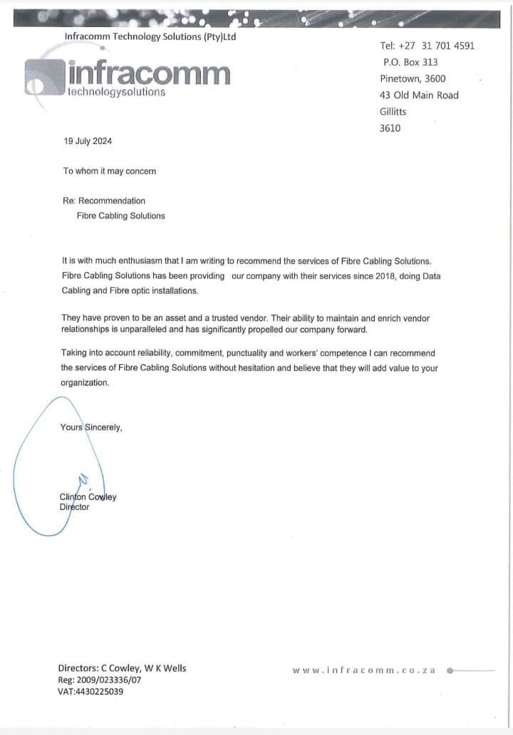Structured Data and voice cabling, fibre fault finding and splicing. More details: